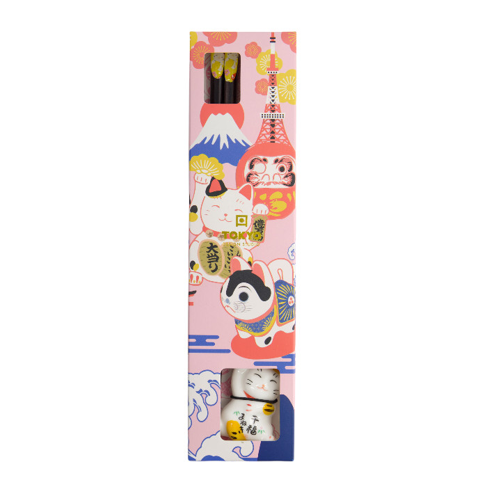 Essstäbchen inklusive Ablage, Geschenkset, Lucky Cat, 23,5 cm - Art Nr. 18876