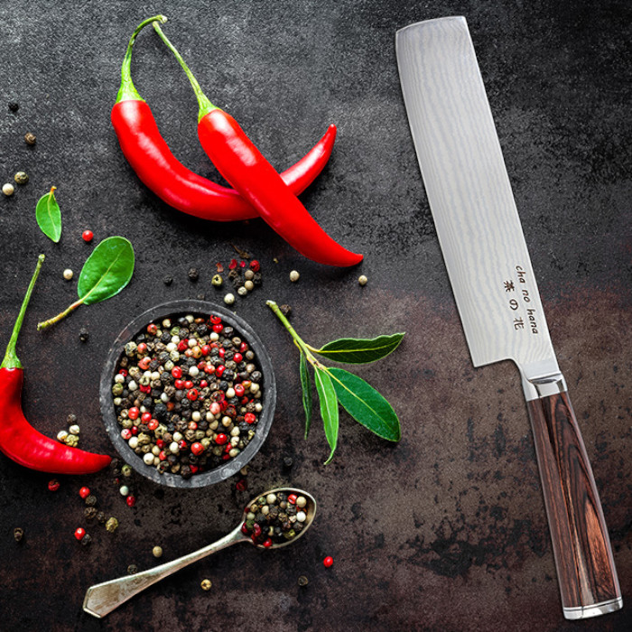 Das Nakiri ist das traditionelle japanische Gemüsemesser. Die Klinge ist beidseitig angeschliffen. Nakiris sind häufig sehr scharf angeschliffen damit das Gemüse beim Hacken sauber zertrennt wird.
