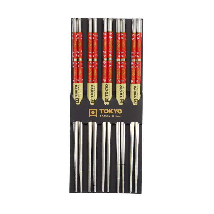 TDS, 5 Paar Essstäbchen, Edelstahl, 23 cm, Rot Art.-Nr. 17907