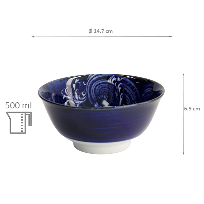 TDS, Japonism Schale, Crane, Blau, Ø 15x7 cm - Art Nr: 18758