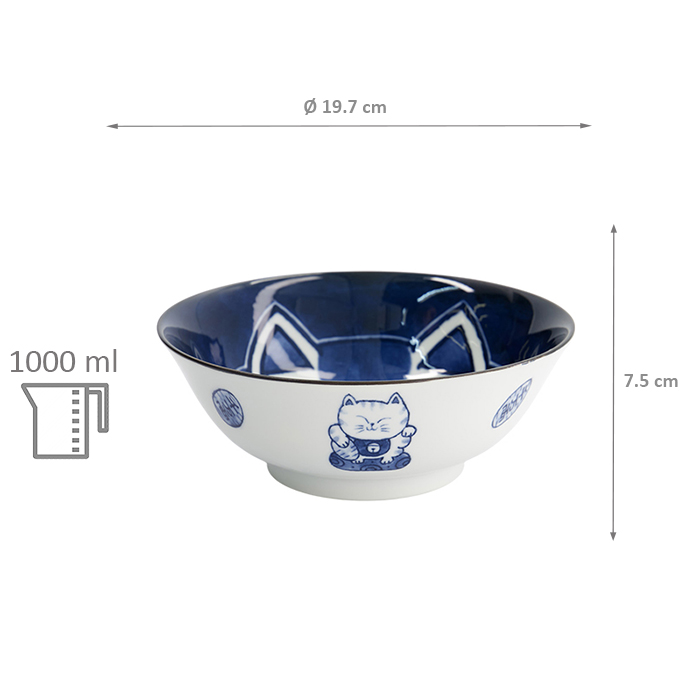 TDS, Ramen-Schale, Kawaii Cat Neko, Blau, Ø 19,7x7,5cm 1000ml, Art.-Nr. 33419