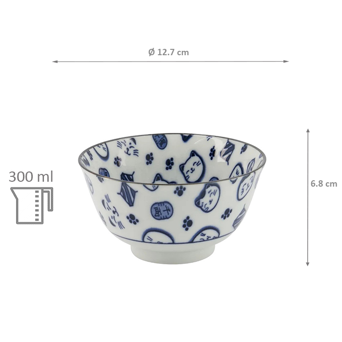 TDS, Schale, Kawaii Glückskatze (Lucky Cat) Neko, Blau, Ø 12,7 x 6,8 cm 300 ml - Art Nr. 16121