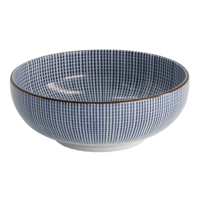Die TDS Schale Sendan Tokusa (Ø 14 cm) besticht durch das klassische Sendan-Tokusa-Muster mit feinen vertikalen Linien in zeitlosem Blau-Weiß und vereint traditionelle japanische Ästhetik mit vielseitiger Funktionalität. Die elegante Form bereichert casual wie gehobene Tischarrangements.