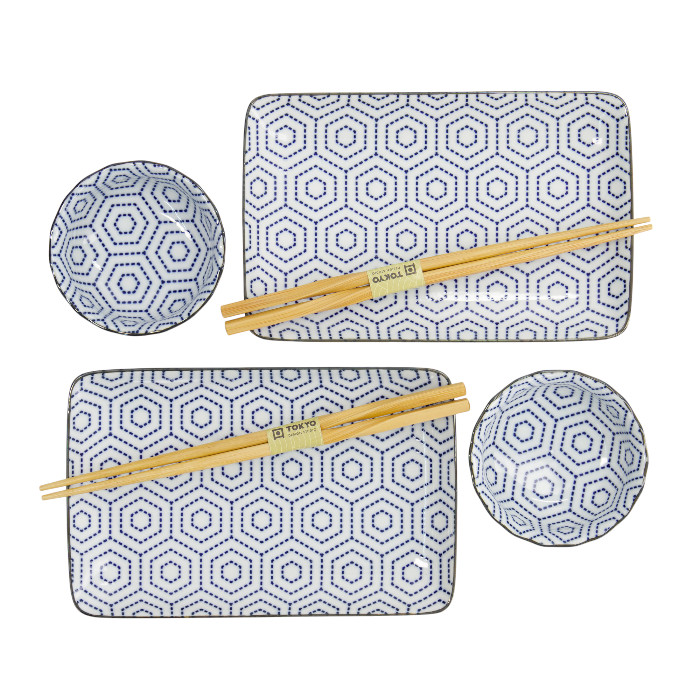 TDS, Sushi Set, Kotobuki, mit Chopsticks, Kikko, 4-tlg., 20,5x13,2x2,2cm & 9,3x3,2cm (120ml), Art.-Nr. 22046