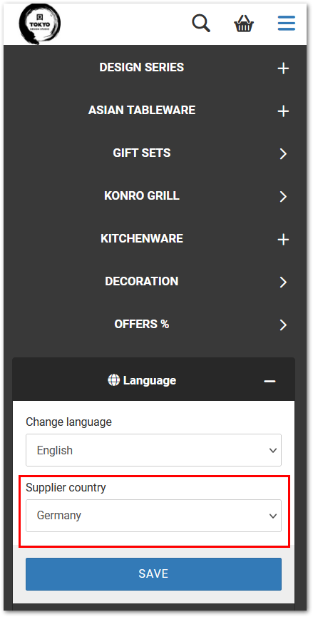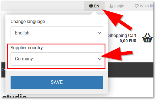 If you have not yet registered an account or do not wish to do so, you can simply select your country in the shop settings and click on "Save". The correct data for your selected country will then also be displayed directly.