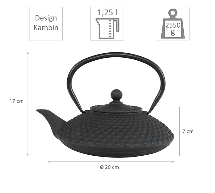 iron cast teapot, Kambin, 1.25 ltr., different colours available, item no. K125