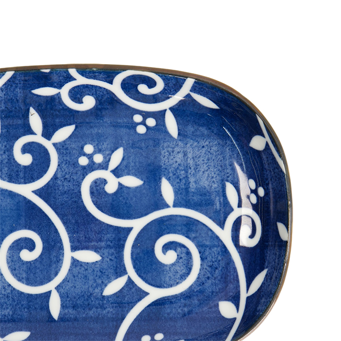TDS, Plate, Tokyo Blue Karakusa Oblong, 18.7x13cm, Item No. 22628