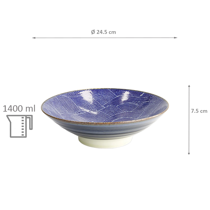 TDS, Bowl, Seigaiha, Blue, Ø 24.5x7.5cm 1400ml, Item No. 14148
