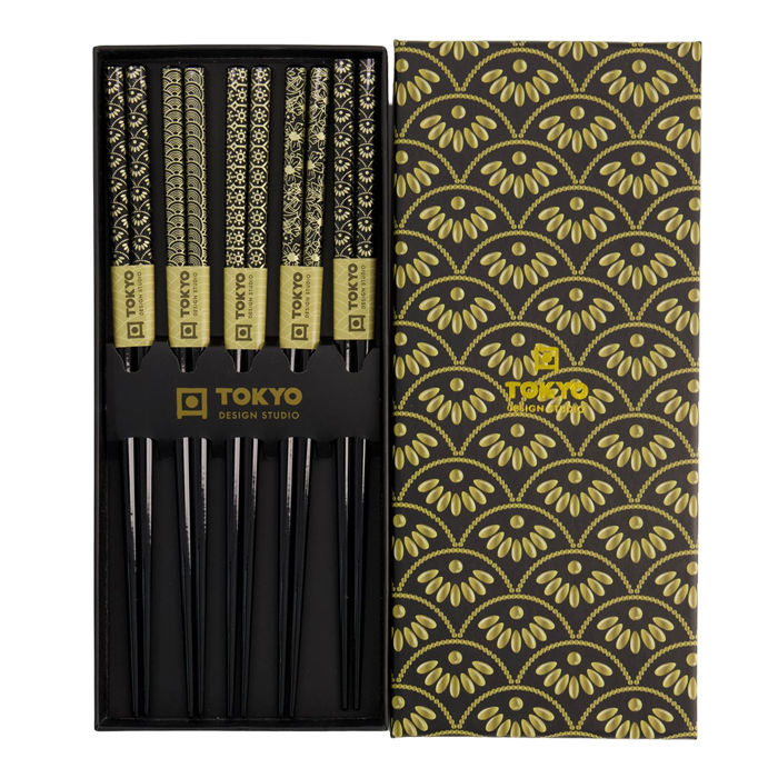 TDS, Chopstick Set 5 pair, Black Gold, Item No. 21292