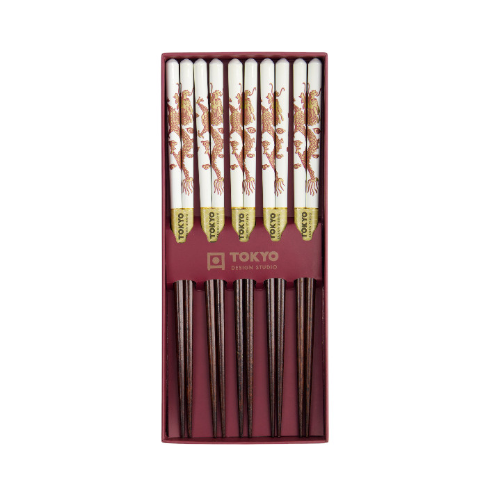 TDS, Chopstick Set, Dragon, 5 pair, 22,5 cm, Item No. 17864