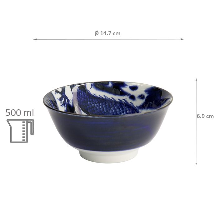 TDS, Japonism Bowl, Dragon, Blue, Ø 15 x 7 cm - Item No: 18759