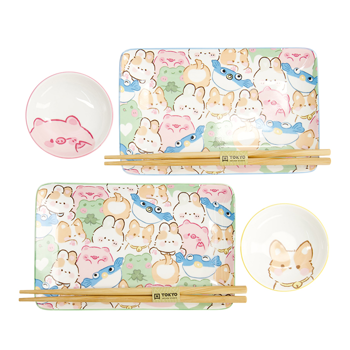 TDS, Sushi Set, Kawaii Animals, Giftset, 4-piece set with Chopsticks, Item No. 33480