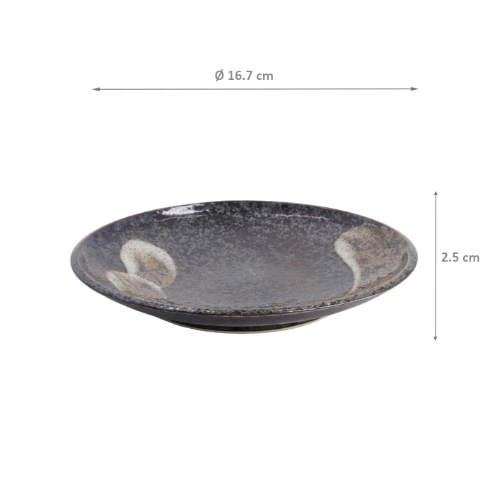 TDS, Plate, Arahake, Round Ø 16.7x2.5cm, Bk/Br, Item No. 21424