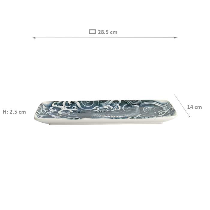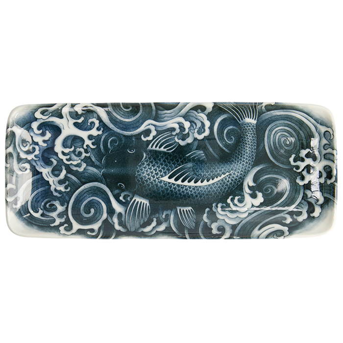 TDS, Plate, Japonism , Carp, Dark Grey, 28.5x14x2.5cm - Item No: 18746