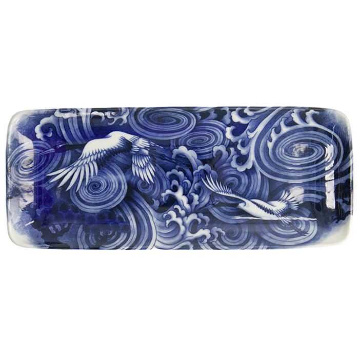 TDS, Plate, Japonism, Crane, Blue, 28.5x14x2.5cm - Item No: 18768