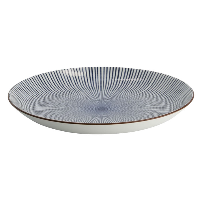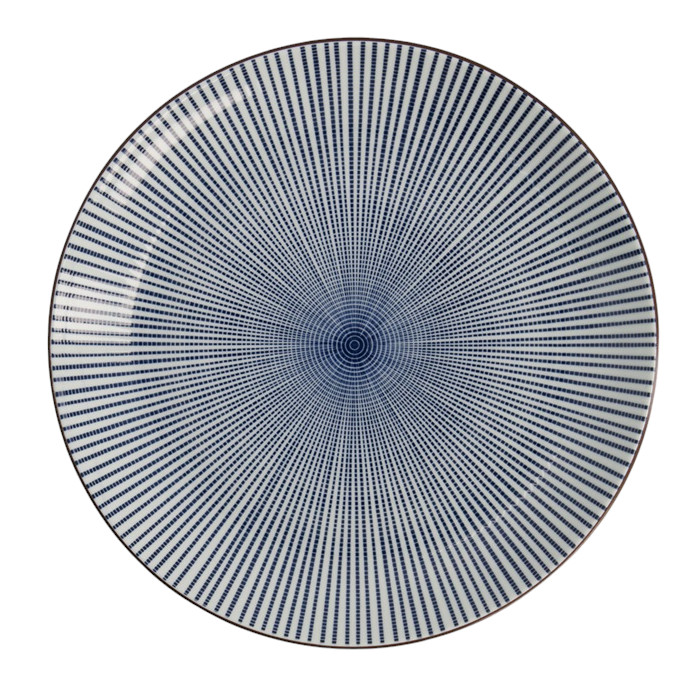 The TDS Plate Sendan Tokusa (Ø 31 cm) features the classic Sendan Tokusa pattern with fine vertical lines in timeless blue and white, blending traditional Japanese aesthetics with everyday versatility. Its refined design enhances both casual meals and contemporary table settings.