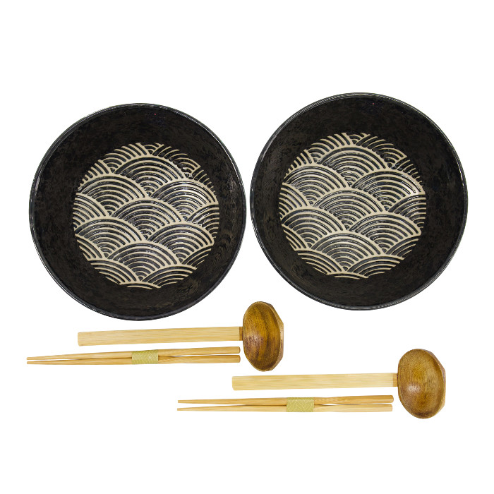 TDS, Ramen Bowl Giftset, Masamura Seikaiha, 6-piece set, Black, Ø 21.5x9cm 1300ml, Item No. 33899