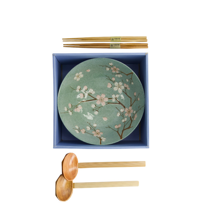 TDS, Ramen Bowl Giftset, Fujisakura, 6-piece set, Green, Ø 21x7.8cm 1000ml, Item No. 33785