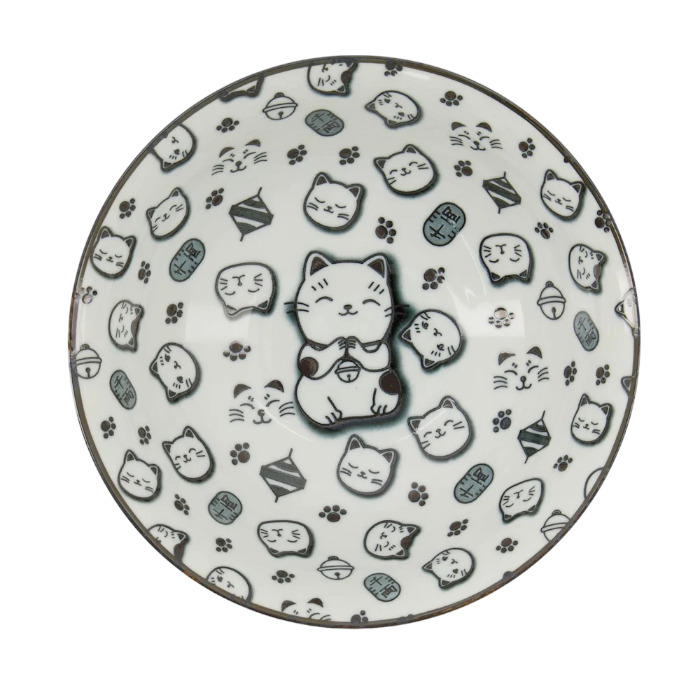 TDS, Ramen Bowl, Kawaii Lucky Cat Neko, Black, Ø 19.4 x 7.4 cm 1000 ml - Item No. 16126