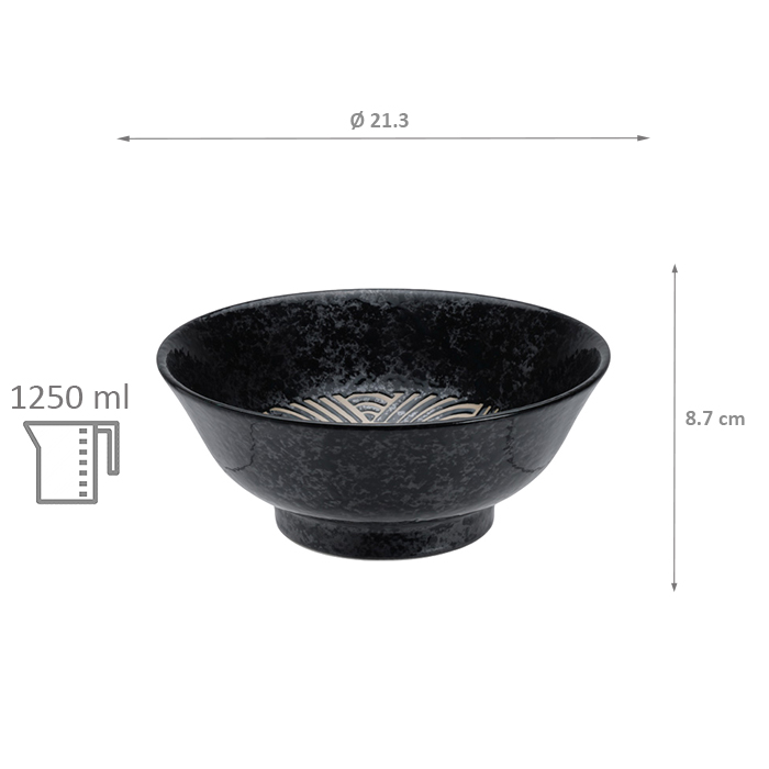 TDS, Ramen Bowl, Mixed Bowls, Masamura Seikaiha Black, Ø 21.3 x 8.7 cm 1250 ml - Item No. 17437