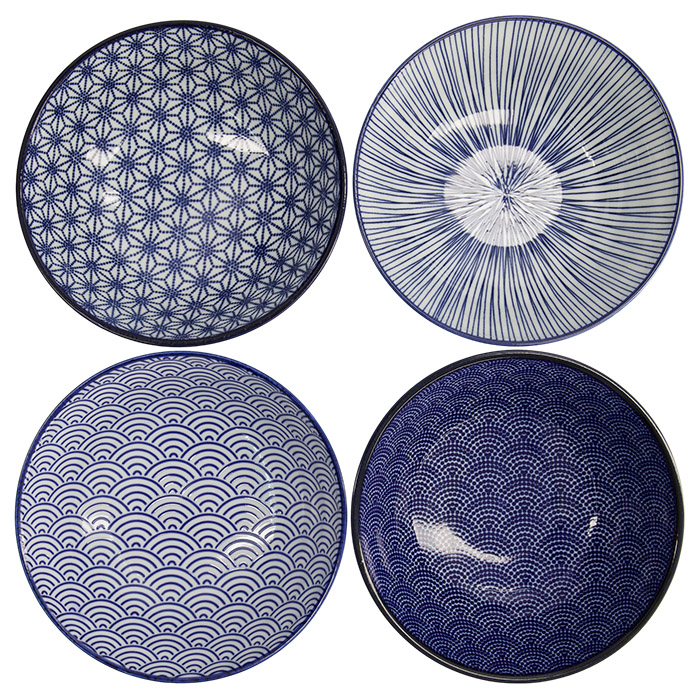 TDS, Ramen Bowl, Nippon Blue, Assorted Designs, 4Pcs Ø 21 x 7.8 cm, 1000ml,- Item No. 18357