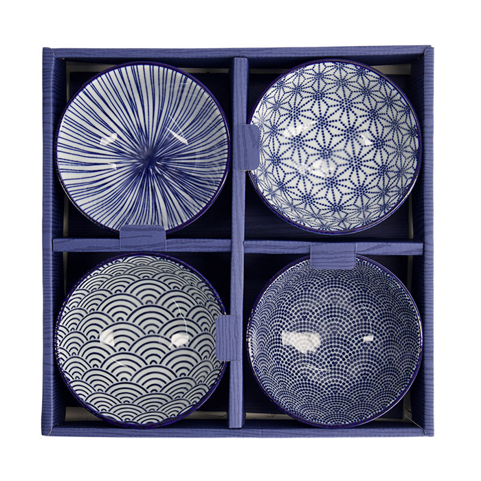 TDS, Rice Bowl, 4-piece set, Nippon Blue, Ø 12 x 6.4 cm 300 ml, Item No. 16040