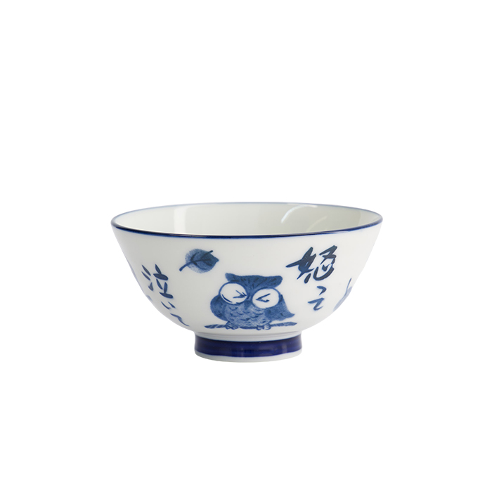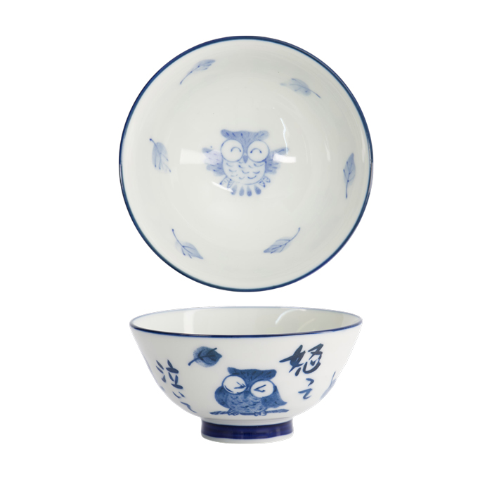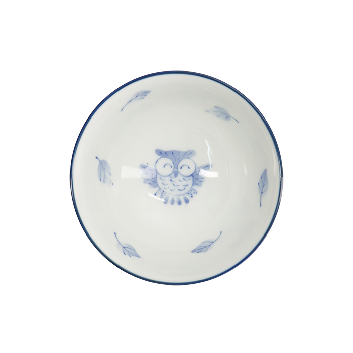 TDS, Rice Bowl, Kawaii, Owl, Blue/White, Ø 11.5x6cm 300ml, Item No. 33207