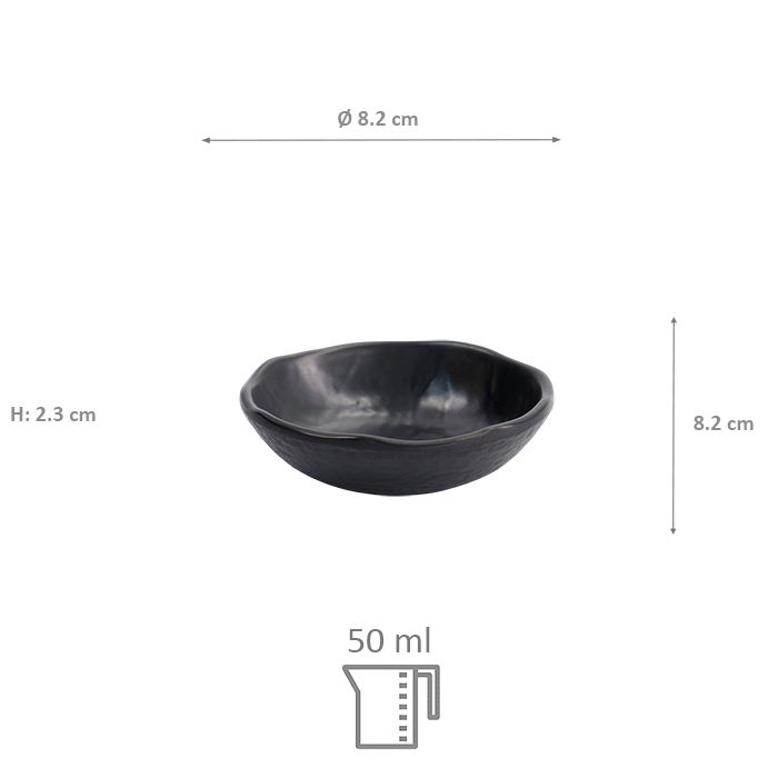 TDS, Sauce Bowl, Melamine Iwate Black, Ø 8.2x2.3cm 50ml, Item No. 33283