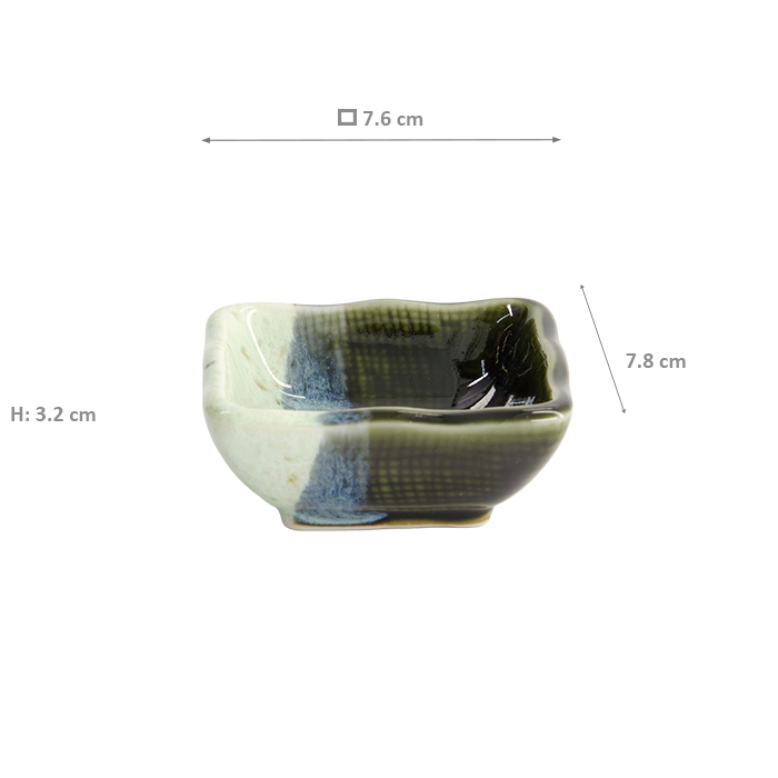 TDS, Soy Sauce Bowl, Green Oribe, 7.6 x 7.8 x 3.2 cm, Item No. 22169