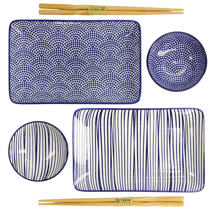 TDS, Sushi Set, Giftset, Nippon Blue, 6-piece set, Lines-Dots, Item No. 17991