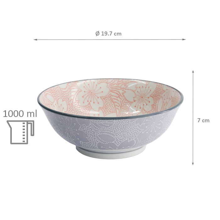 TDS, Tayo Bowl, Mixed Bowls Sakura, Red/Grey, Ø 19.7 x 7 cm, 1000ml - Item No. 15469