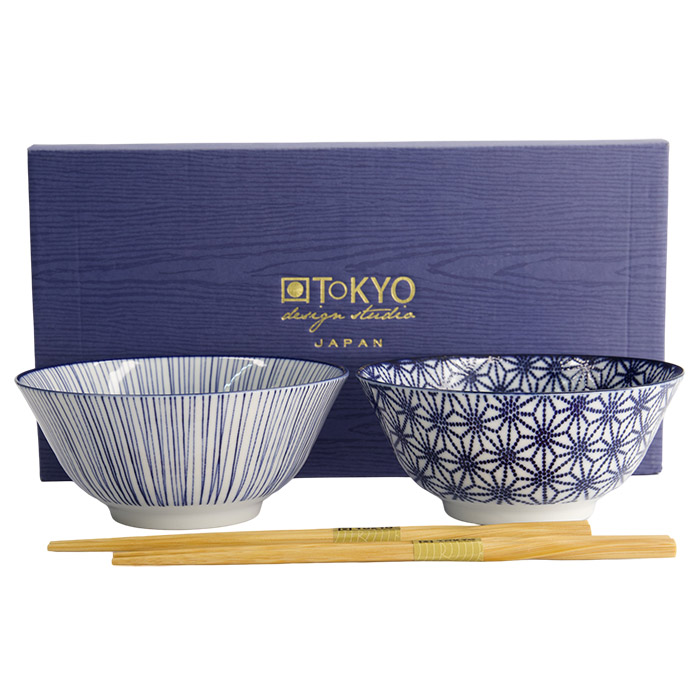 TDS, Tayo Bowl with Chopsticks, 2-piece set, Giftset, Nippon Blue, Ø 15.2 x 6.7 cm 500 ml, Item No. 17951