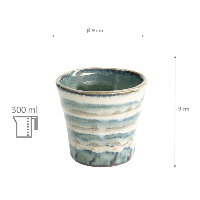 TDS, Teacup, Green/Beige Stripe, Ø 9 x 9 cm 300 ml, Item No. 22085